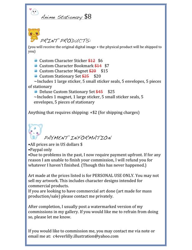 Cash Commissions (OPEN) : NEW Cash PRICES!!! $4 for Chibi Art$6 for Half Body// LineArt$8 for Half Body// Color$10 for Full Body// LineArt$12 for Full Body// LineArt